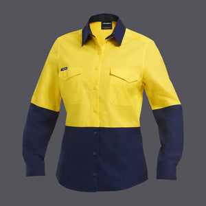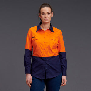 King Gee Womens Workcool 2 Hi Vis Spliced Shirt Long Sleeve